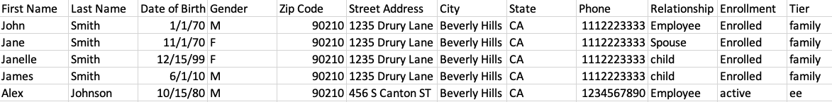 Tier: : “ee” || “es” || “ec” || “fam” || “employee only” || “employee” || “family” || “f” || “eec” || “ees” || “eefam” || “eef” || “eefamily” || "waived" || "waiver" || "w" || "waive"